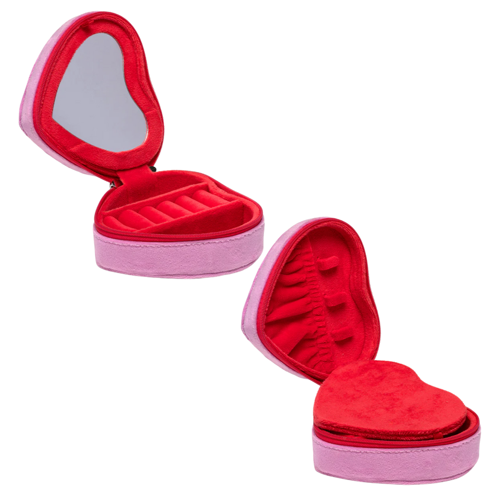 Heart with Bow Velvet Zip Jewelry Case