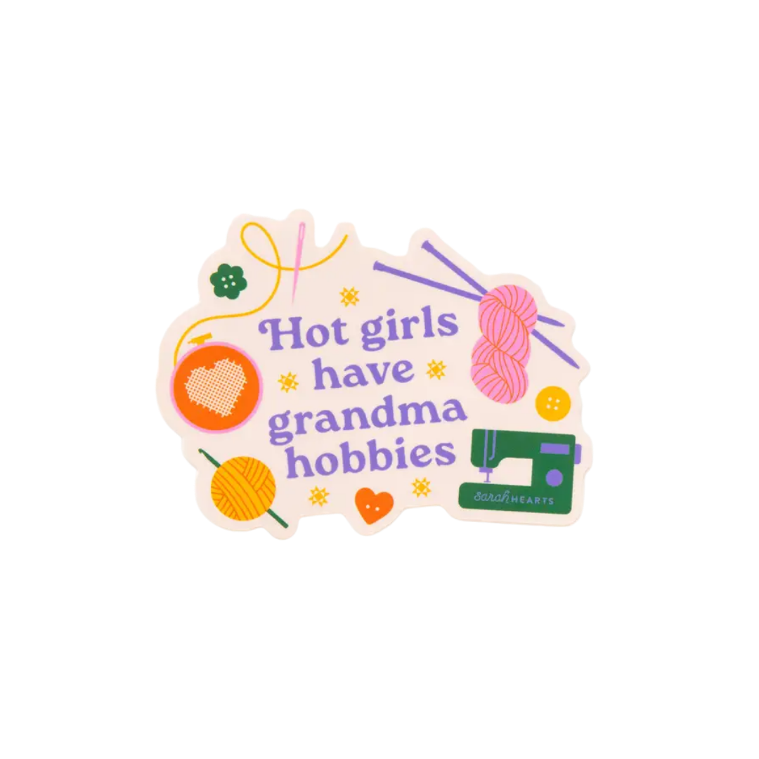 Hot Girls Have Grandma Hobbies Sticker - Vinyl Waterproof