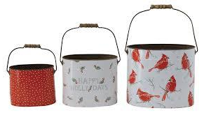Metal Buckets w/Pattern & Wood Handles