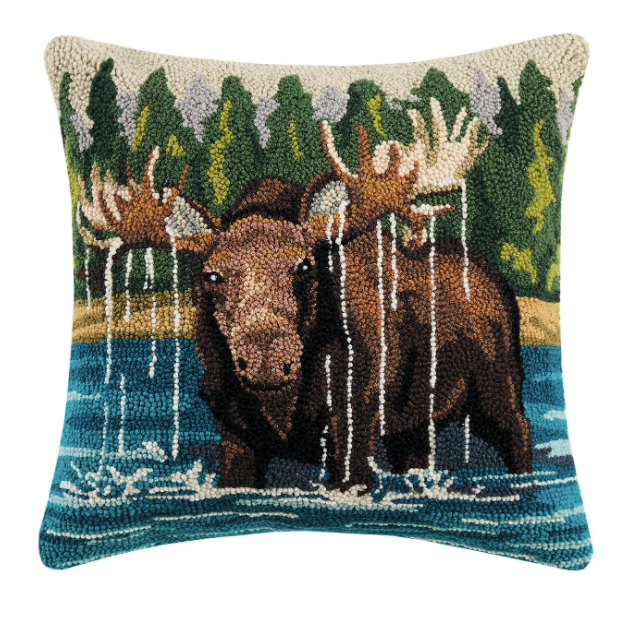 Moose in the Lake Hook Pillow