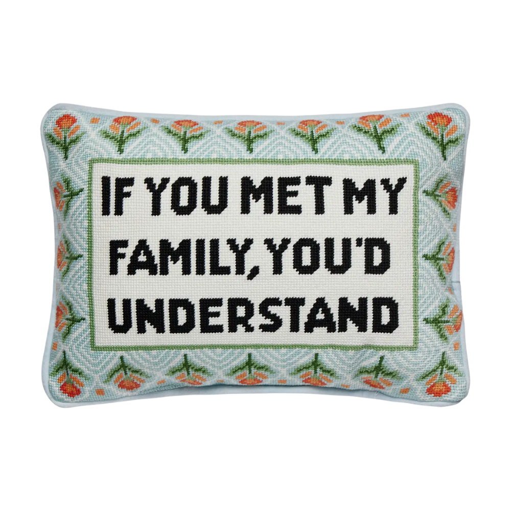 If You Met My Family Embroidered Pillow