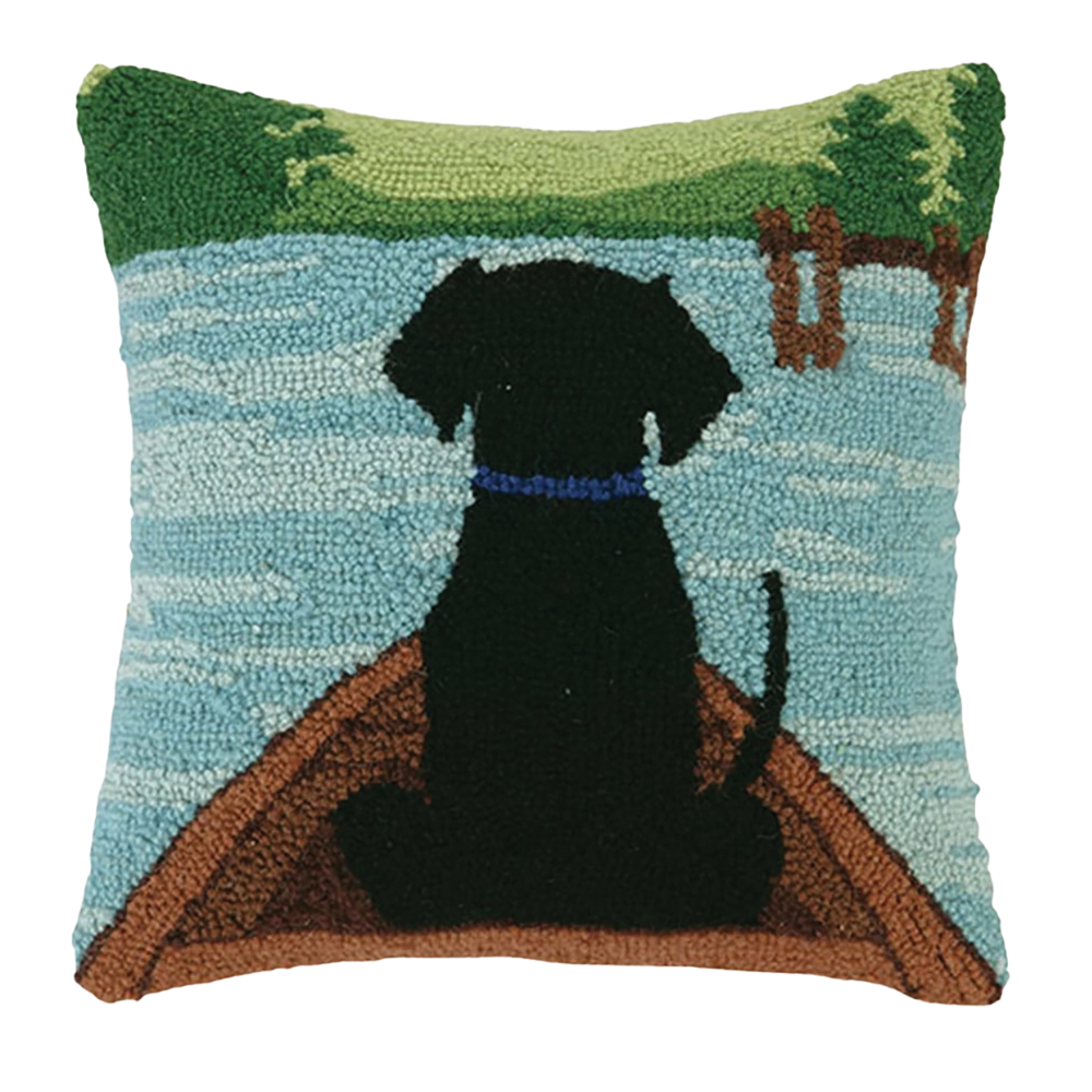 Black Lab in Canoe Hook Pillow